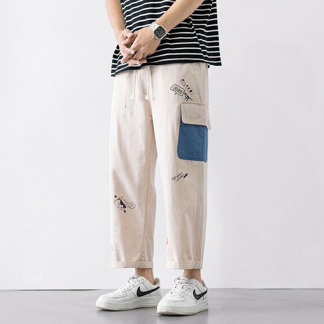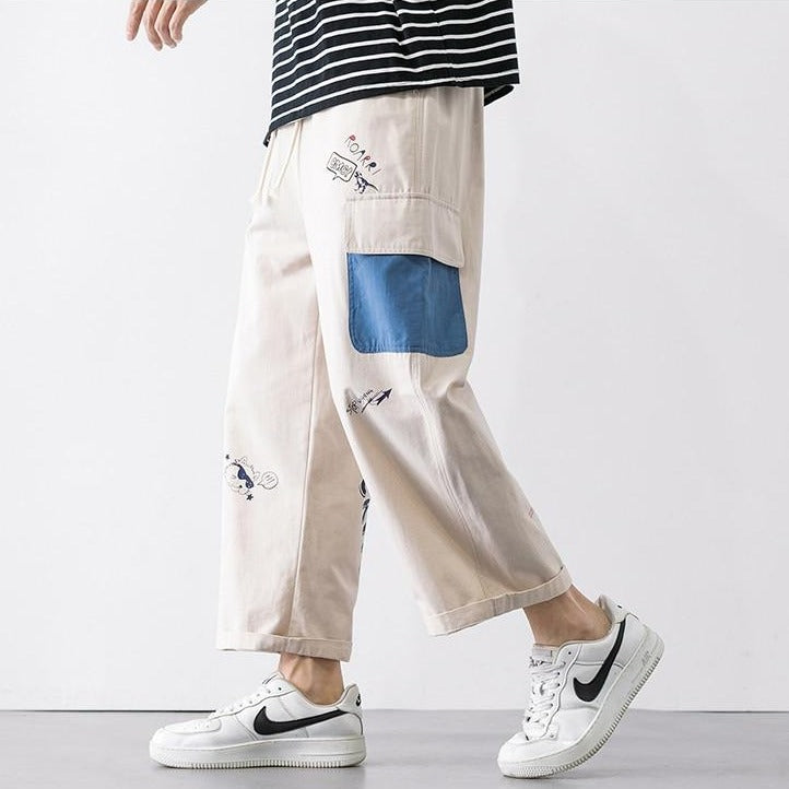 Pantalon cargo homme évasé à poches colorées